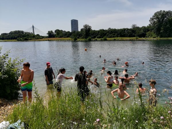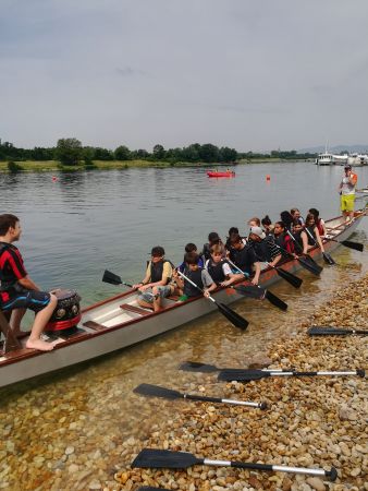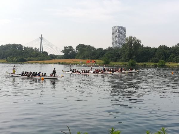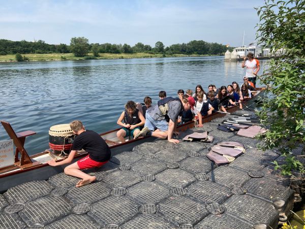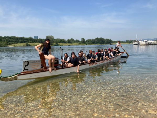 Wie bereits letztes Jahr, nahmen die dritten Klassen auch heuer wieder am Drachenboot Schulcup an der Alten Donau teil. Insgesamt traten 20 Teams beim Wettkampf an. Dabei konnten die SchülerInnen nicht nur ihren Teamgeist unter Beweis stellen, sondern auch die Zeit im Freien genießen. So wurde gerudert, mit Bällen gespielt und zur Abkühlung im Wasser geplanscht.