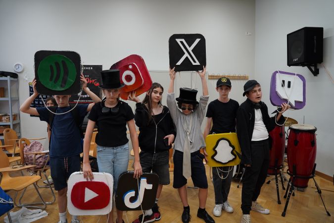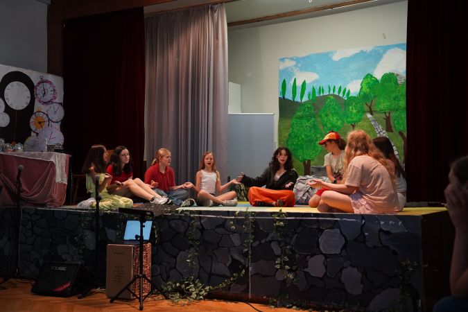 Nach intensiven und monatelangen Proben konnten wir im Juli 2025 endlich unsere Neuinszenierung von "Momo" erfolgreich präsentieren. Eltern, LehrerInnen und Schülerinnen hatten die Gelegenheit, die Vorstellung entweder am Vormittag oder Abend zu besuchen. Die Zeitfresser in unserer heutigen Zeit sind unsere Mobiltelefone und Social Media.