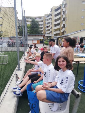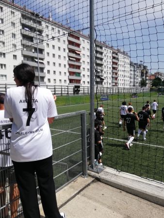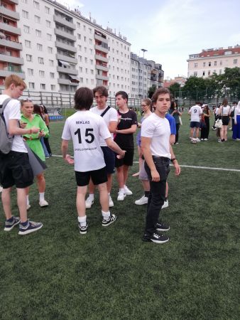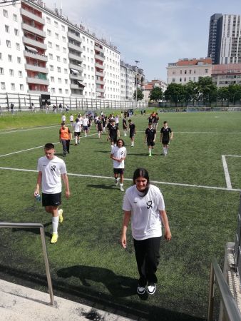 Am 21.06.2023 fand im WAF Brigittenau das Fußballmatch Sperlgymnasium gegen BRG Lessinggasse statt. An die 200 Zuschauer:innen feuerten die Spieler an und schließlich erzielte unsere Mannschaft drei Tore. Obwohl wir einige kurzfristige Ausfälle zu verkraften hatten, schlugen sich die Spieler des Sperlgymnasiums wacker.